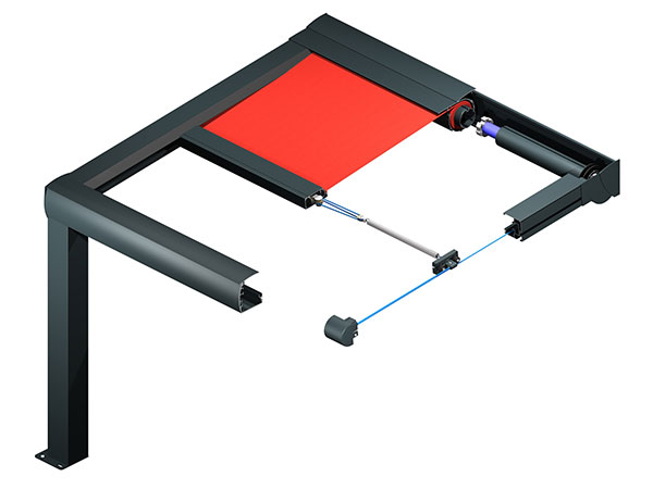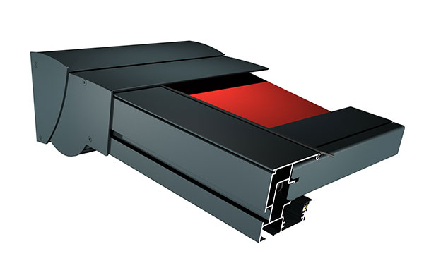 O gabinete de estudo projetou esta nova versão para facilitar o acesso ao motor e a troca do tela. Sempre com o objetivo de facilitar o trabalho dos profissionais (toldos e pérgolas) e para aumentar a vida útil do produto, motores e peças podem ser facilmente trocados graças à tampa pivotante. A montagem da pérgola de tela é mais fácil e rápida.